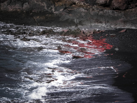 Rocky El Golfo Beach on Lanzarote Island. Coastal view.