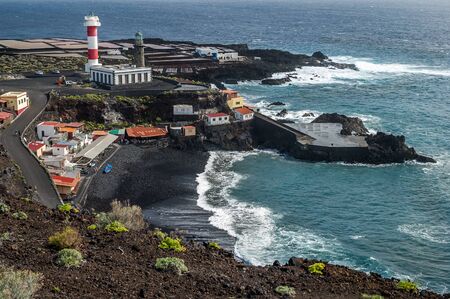 Volcanic landscape, Lighthouse and salina of Fuencaliente, La Palma