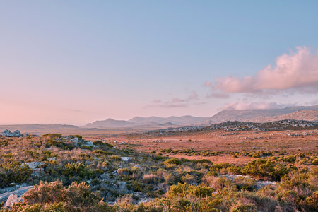View of a cloudy sunrise from Boulders beach with a view of False Bay, Simon's Town, Cape Town, South Africa