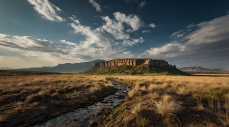 The farm landscape on road R711 between Clarens and Fouriesburg in the Free State Province
