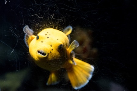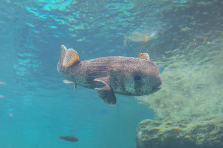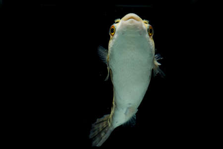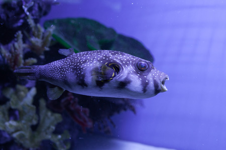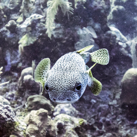 Fugu puffer blowfish fish Arothron Hispidus in aquarium as nature underwater sea life background