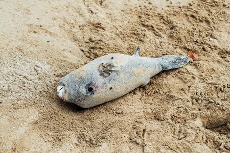Washing up in a plastic bag was puffer fish. Ocean plastic contamination is a serious environmental issue. Generative AI