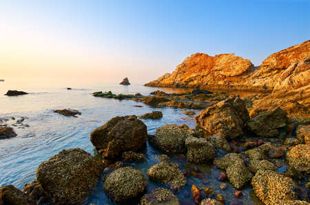 The landscape of coast sunrise of Dalian Bay, China.