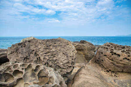 Elephant Trunk Rock in Shenao Keelung, New Taipei, Taiwan beside the ocean coast.