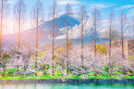 Fuji mountain with cherry blossoms in Tokyo Japan