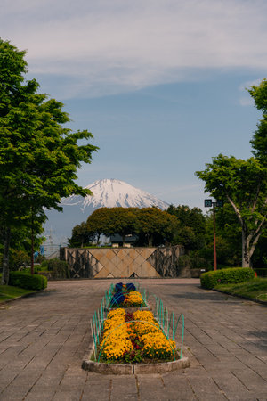 Gotemba, japan - 3 August 2025 Peace Park with Mt. Fuji in spring season. High quality photo