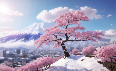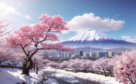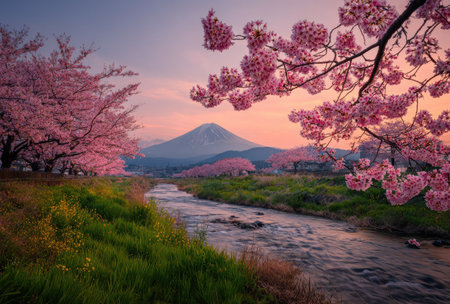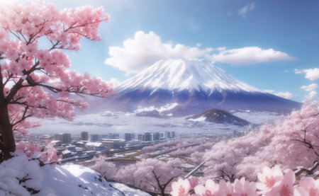 Mountain Fuji Sakura cherry blossom Japan spring season