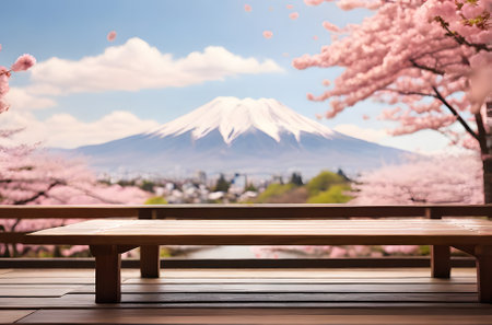Fuji mountain with cherry blossoms in Tokyo Japan