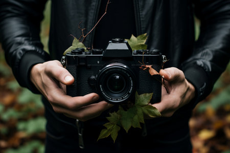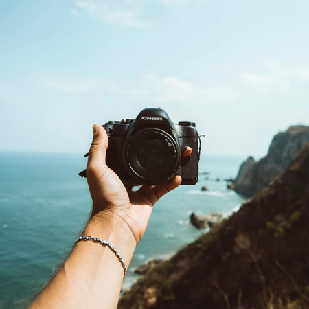 Candid Moments Captured: A Man Skillfully Framing Natures Beauty with his Black Camera