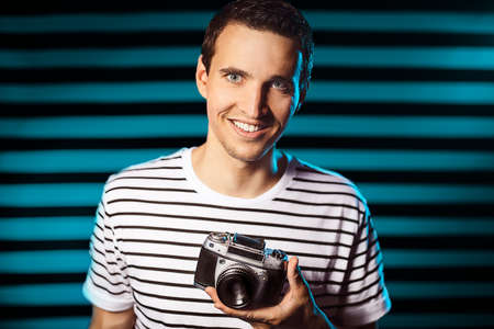 Man photographing with a camera. close-up