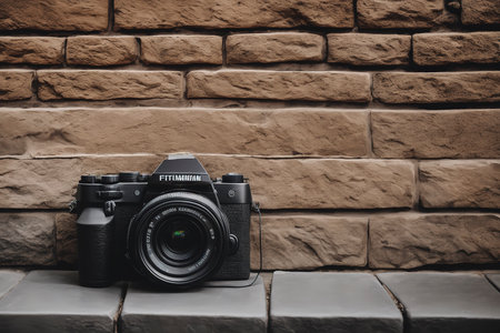 Close-up of a vintage camera placed on a rustic outdoor surface, illuminated by warm sunlight, evoking nostalgia and a love for photography.