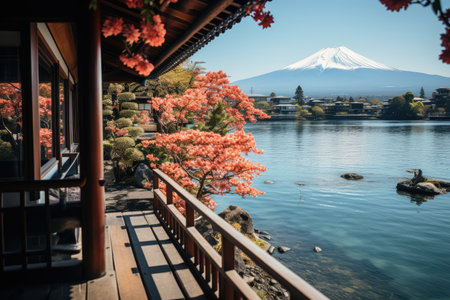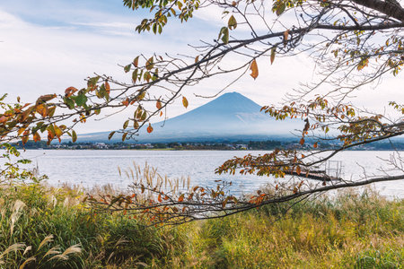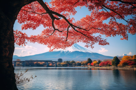 Mount Fuji, the iconic symbol of Japan, during the season of autumn foliage, a period of exceptional beauty.kawaguchiko,japan.