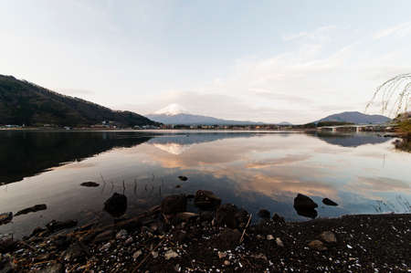 Mt Fuji in the early morning with reflection on the lake kawaguchiko
