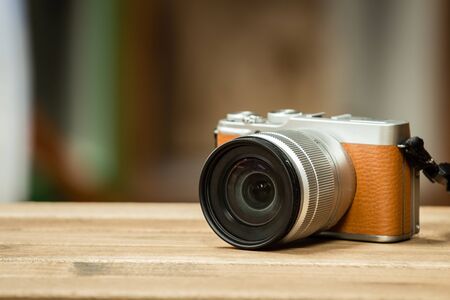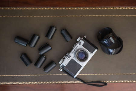 Tel Aviv Israel March 28, 2020 Closeup of an old camera placed on a wooden table