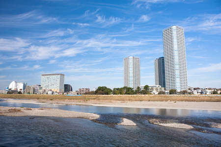 Kawasaki residential area and skyscrapers. Shooting Location: Kawasaki City, Kanagawa Prefecture