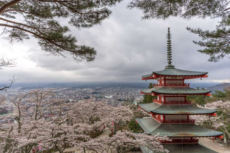 Landmark of japan Chureito Pagoda and Mt. Fuji in Fujiyoshida, Japan
