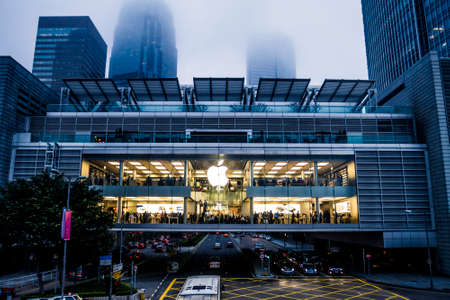 Hong Kong, China - 1 March, 2012: Apple Store at IFC Mall in Central District at nighttime