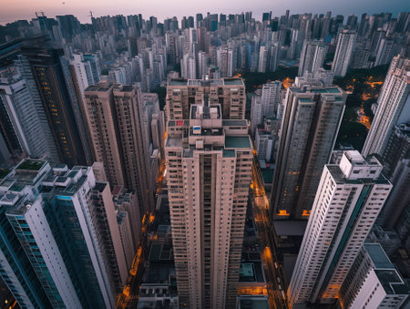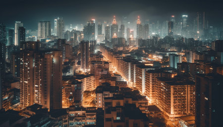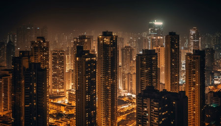 Dense skyline of highrise buildings under vibrant city lights Dec 17 2025