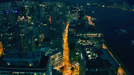 Generative AI : Aerial view of high density residential buildings in Hong Kong Island at sunset Hong Kong Kowloon district China