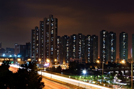 Hong Kong Skyline Through Apartment Buildings with Water View