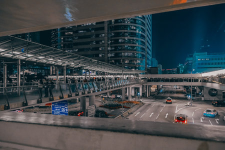 HONG KONG - NOV 15 2016: Street Traffic in Hong Kong. People Crowd at Pedestian, Cars and Buses.
