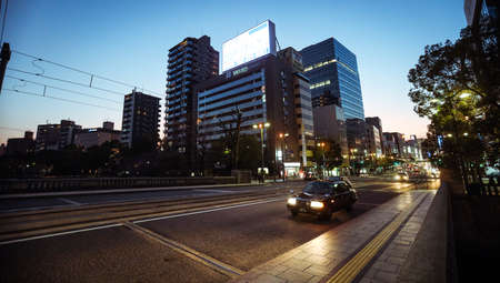 Hiroshima, Japan - APRIL 3 : Hiroshima city downtown in early morning in Japan on April 3, 2017