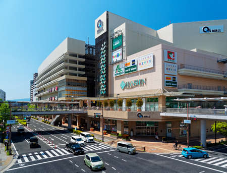 Matsuyama, Japan - April 21, 2019: Matsuyama City Station square, main traffic center and shopping street