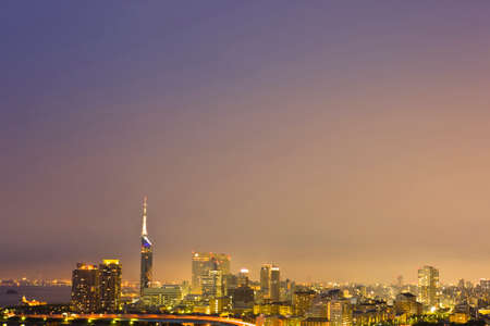 summer light sunset skyline. with a view of fukuoka downtown city cityscape, Fukuoka, Japan