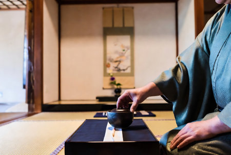 Japanese tea ceremony in a traditional japanese room, close up