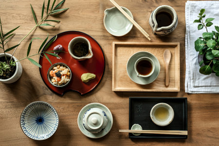 Top view japanese tableware arrangement