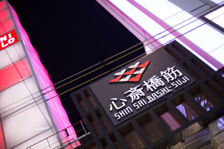 OSAKA, JAPAN - NOVEMBER 6,2015 the night outdoor scene of Shinsaibashi signage, the Shinsaibashi is the famous outing city and shopping area destination for tourist, OSAKA, JAPAN
