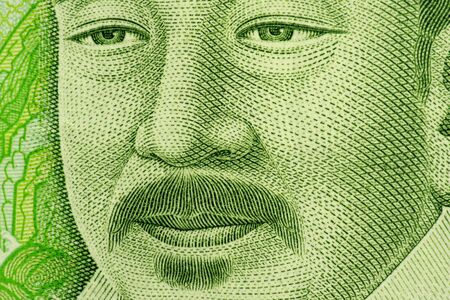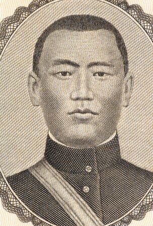 Damdin Sukhbaatar a closeup portrait from Mongolian money - Tugrik