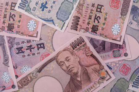 Japanese paper currency, the background of Japan's money. Asian business, sales, insurance, taxes