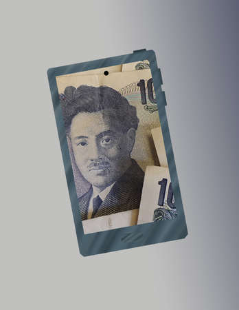 illustration with the icon of a smartphone and the image of japanese money