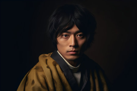 Portrait of a japanese man wearing a yellow kimono