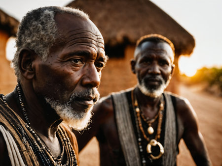 photo of african old people tribal warriors with armor, generative AI