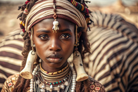 Generative AI, Mucubal tribe, Tchitundo Hulo, Virei, Angola, and a young Mucubal lady wearing her traditional headscarf