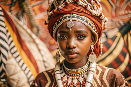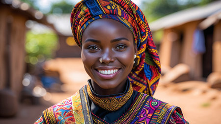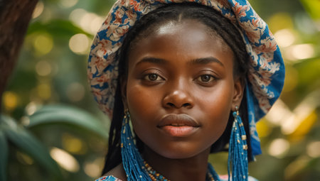 Close-up portrait of a beautiful young African woman in traditional clothes.