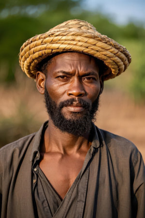 Portrait of a young African man with a straw hat on his head