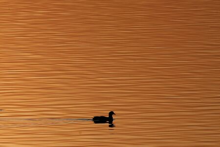 a water bird swims on a lake