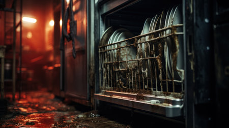 Modern dishwasher kitchen household dish washing machine professional restaurant cafe equipment consumer grade heavy load home routine clean plates cups appliances loading unloading water technology
