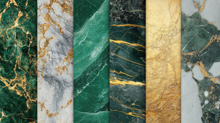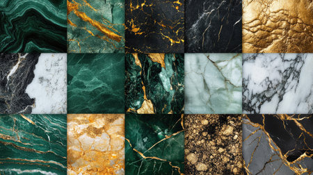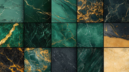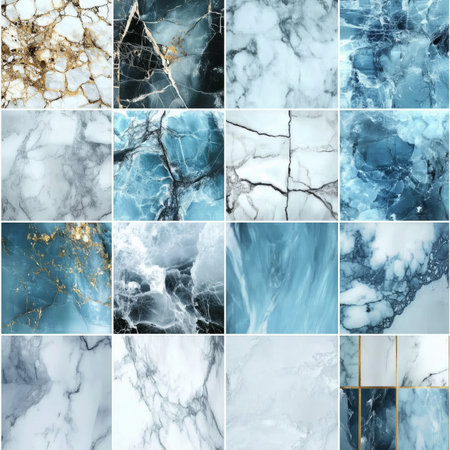Elegant marble tiles featuring intricate veined patterns in luxurious colors