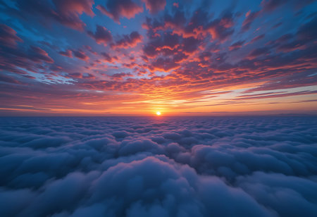 Beautiful sunset above the clouds. Colorful sky. Nature background