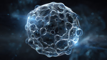 A futuristic abstract sphere molecular network, designed for science backgrounds, medical visuals, and beauty technology advertising