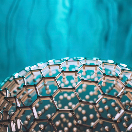 abstract futuristic image of nano technologies and microtechnologies in form of spherical grid, created with generative ai
