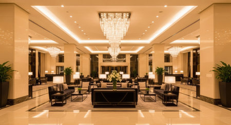 Interior of hotel lobby with beautiful lighting, luxury hotel lobby interior.