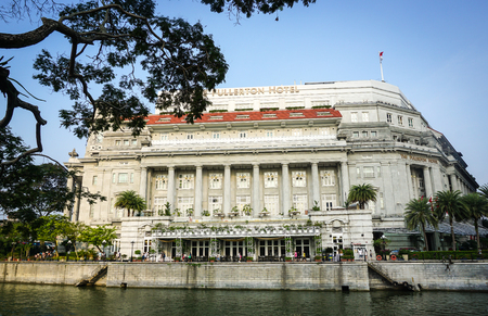 SINGAPORE - OCTOBER 16, 2014: The Fullerton Hotel Singapore is a five star luxury hotel located near the mouth of the Singapore River, in the