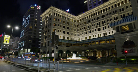 China, Hong Kong - January 30, 2013: The Peninsula at Hongkong is one of the most famous hotels of the world. The image shows the hotel at night. It belongs to the Leading Hotels of the world.