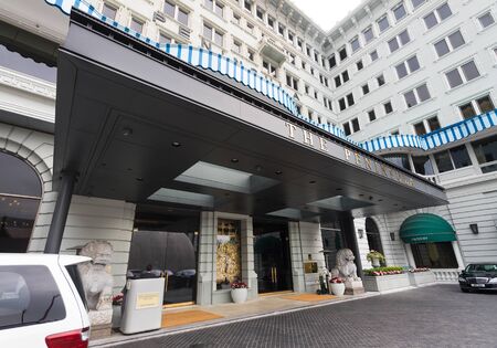 HONG KONG - MARCH 16, 2017: The Peninsula Hong Kong located in Tsim Sha Tsui in Kowloon, is the flagship property of The Peninsula Hotels group, notable for its large fleet of Rolls Royces.