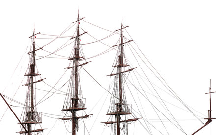 Sail masts of frigate against the sky.